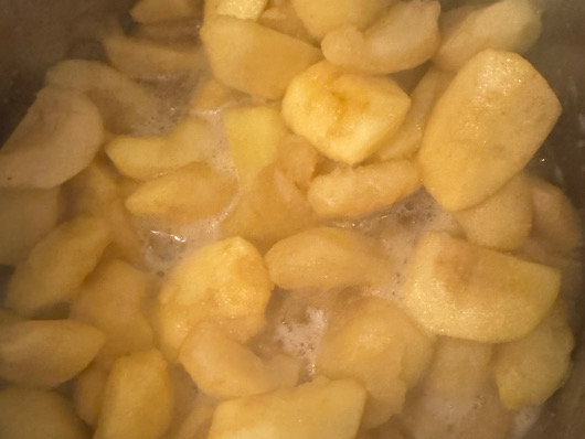 - Wrzucamy do garnka zasypujemy cynamonem ciut cukru i gotujemy mieszając ok 45/60 min tak żeby jeszcze nie wszystkie się rozpadły